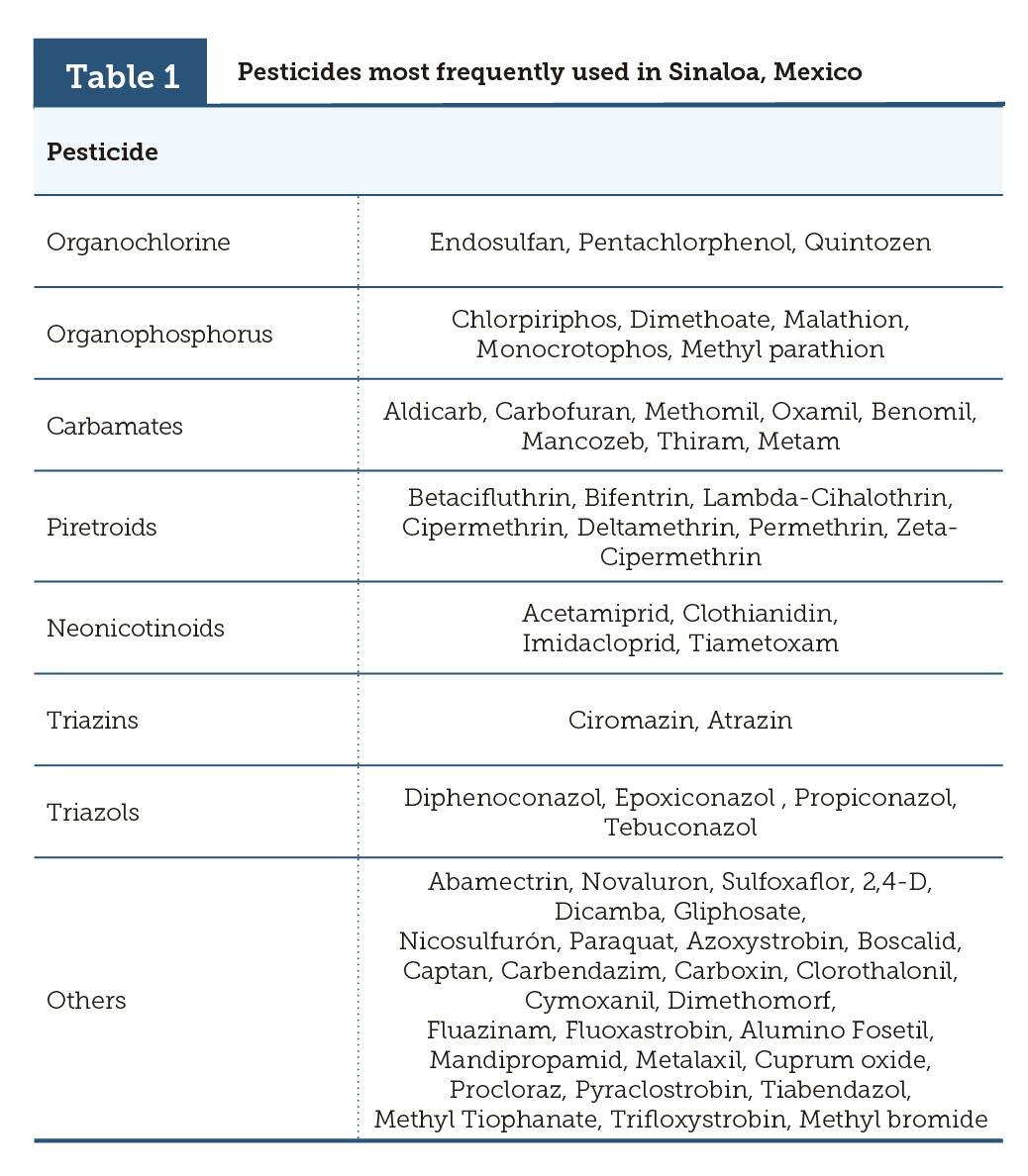 | Table 1 | Pesticides most frequently used in Sinaloa, Mexico |