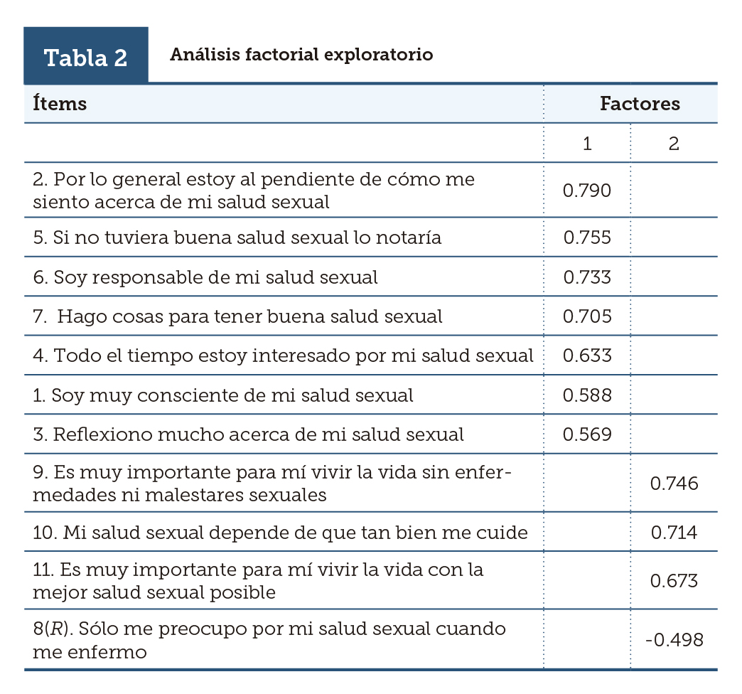 | 2. Por lo general estoy al pendiente de cómo me siento acerca de mi salud sexual | 0.771 |