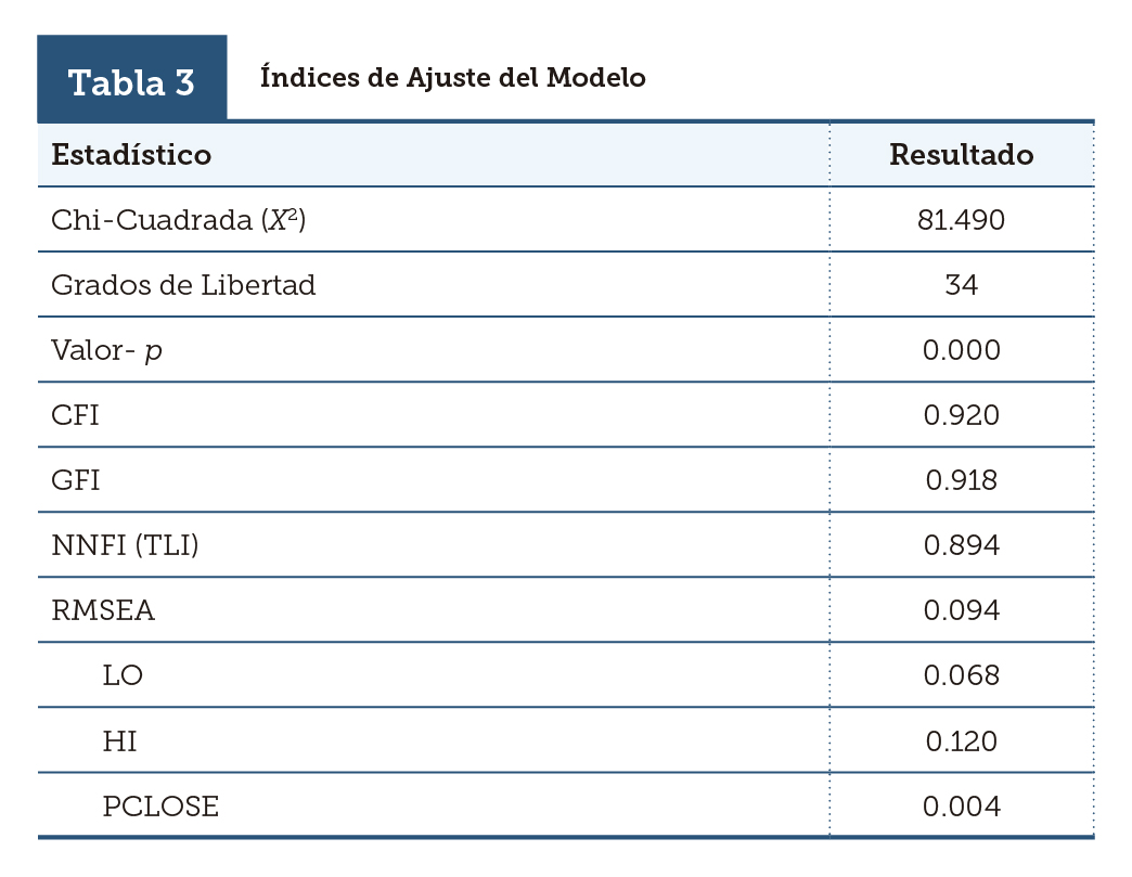 | Tabla 3 | Índices de Ajuste del Modelo |