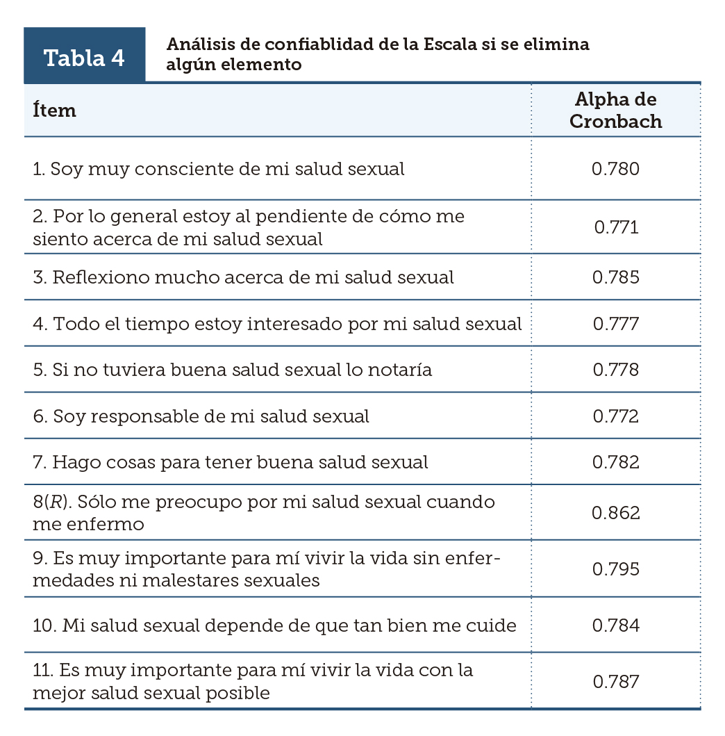 | 10. Mi salud sexual depende de que tan bien me cuide | 0.784 |