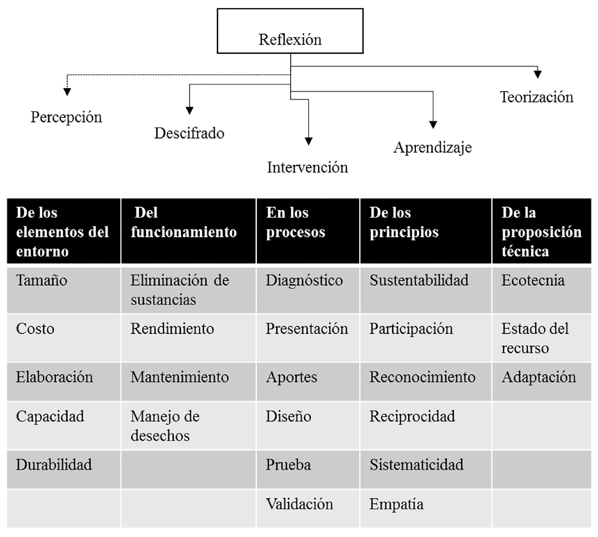Durante las primeras sesiones sobre el abordaje para comprender el contexto, ocurrieron dos reconfortantes emergencias conceptuales, es decir, dos procesos sintéticos que ilustran la comprensión de los estudiantes en el caso universitario, de la imprescindible aceptación de la comunidad y el grado en que puede ser favorable la implementación de una ecotecnia y, por la parte de los estudiantes de secundaria, la deducción del principio de sistematicidad que implica el cuidado del agua ante la afortunada imposibilidad de desarticular en tres procesos el manejo sustentable de esta correspondientes a la captación, uso y reciclaje.