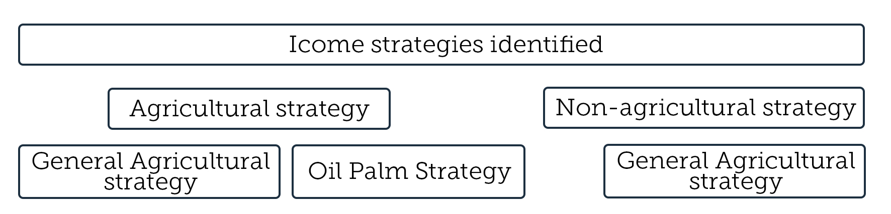 To identify the influence that the oil palm crop may have on the DGs, the income strategy identified as “Agricultural Strategy” was sub-divided (figure 1) in the following manner: