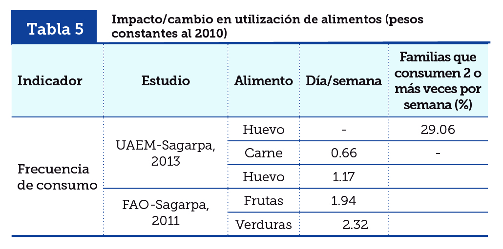 | Tabla 5 | Impacto/cambio en utilización de alimentos (pesos constantes al 2010) |