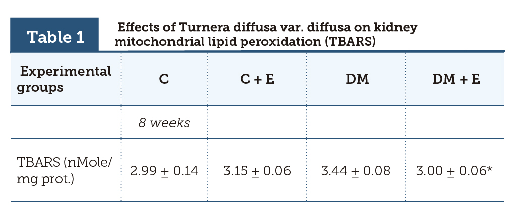 | Table 1 | Effects of Turnera diffusa var. diffusa on kidney mitochondrial lipid peroxidation (TBARS) |