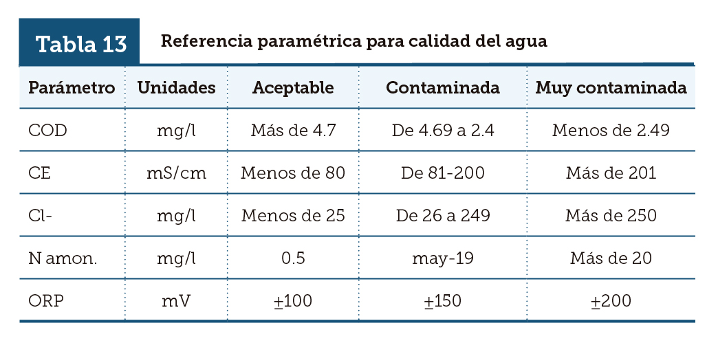 | Tabla 13 | Referencia paramétrica para calidad del agua |