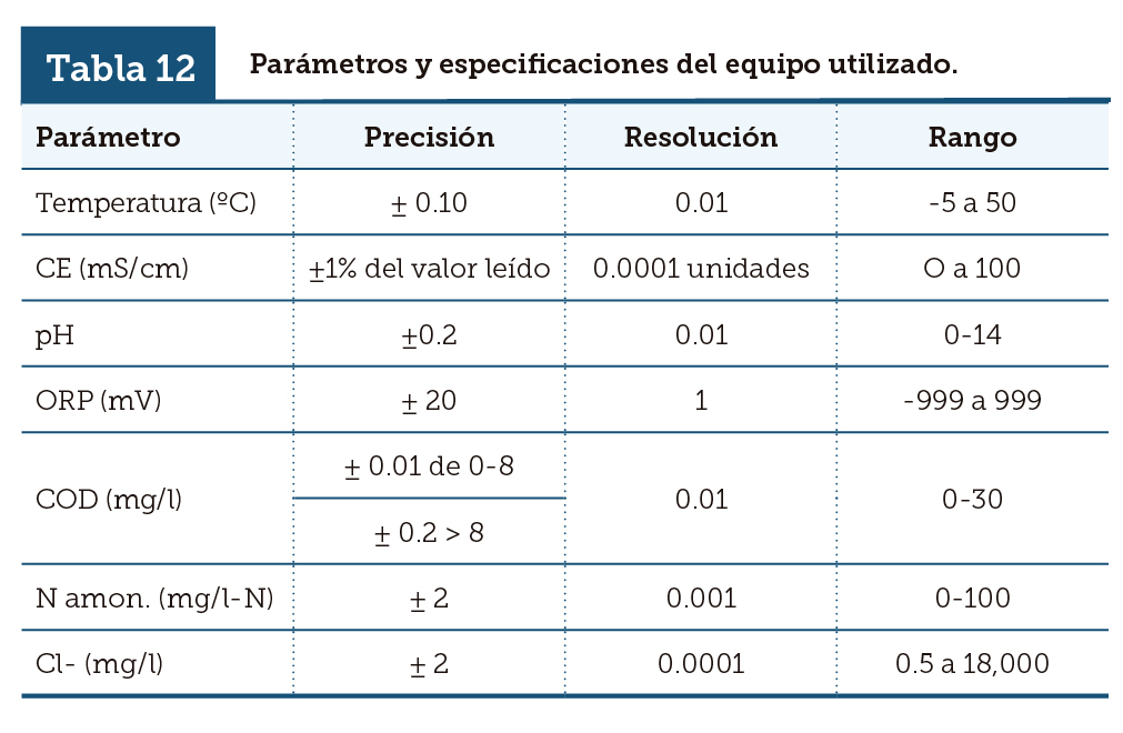 Fuente: DS5X Hydrolab Sonda Multiparamétrica para la determinación de calidad del agua (2007). Descargar Tabla