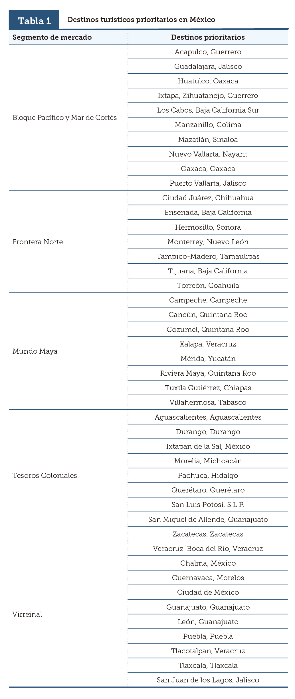 | Tabla 1 | Destinos turísticos prioritarios en México |