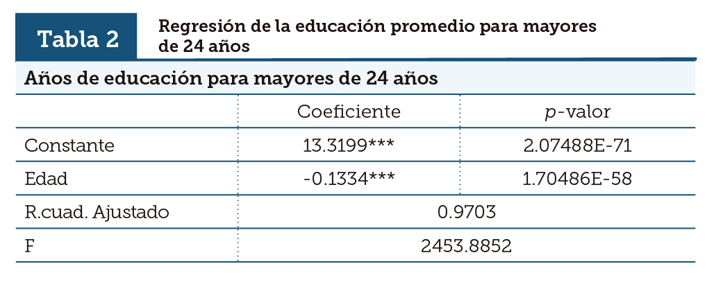 | Tabla 2 | Regresión de la educación promedio para mayores de 24 años |