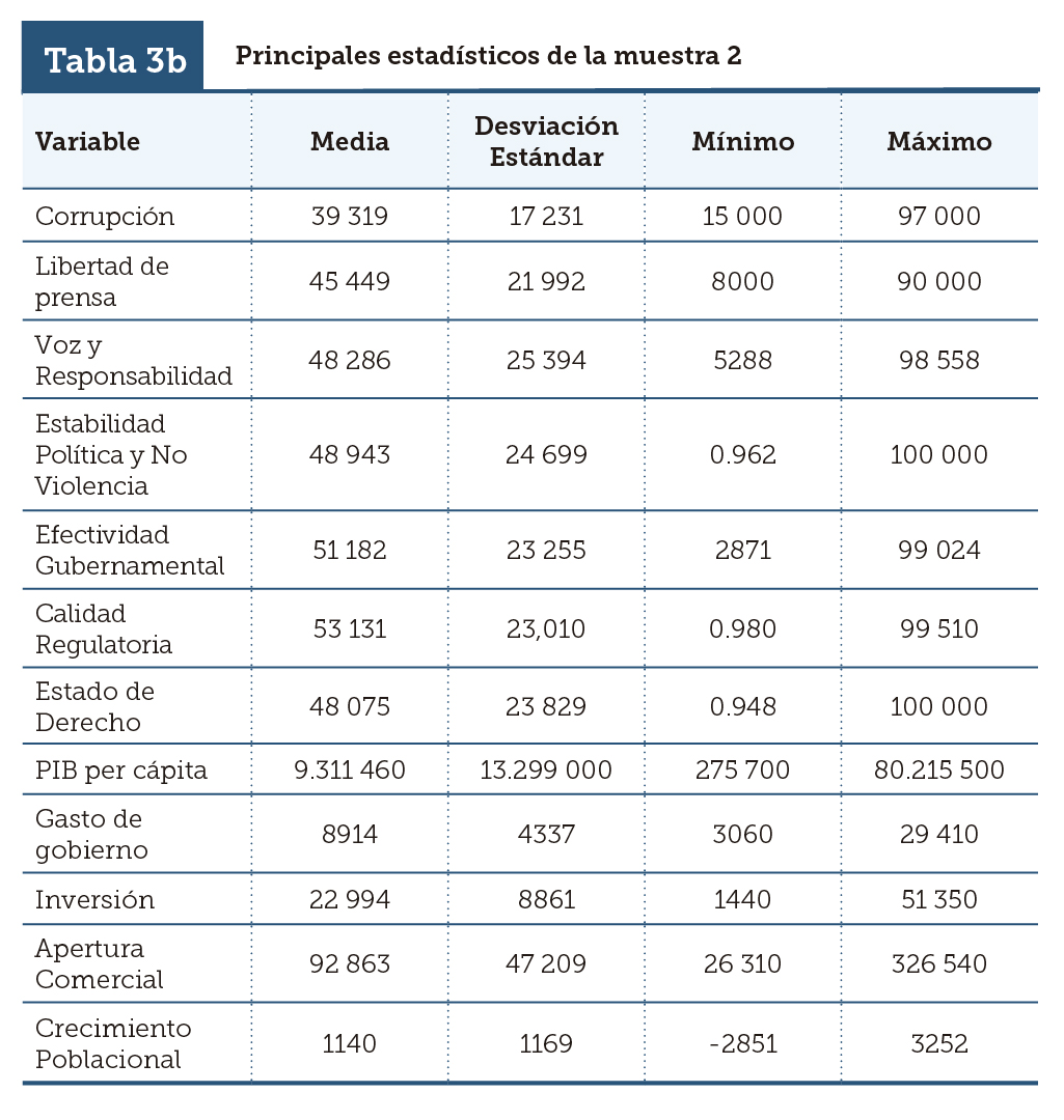 | Tabla 3b | Principales estadísticos de la muestra 2 |