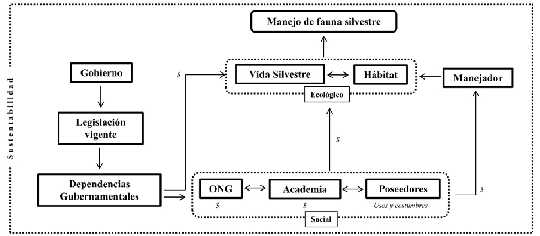 Es necesario formalizar la integración del gobierno (instituciones gubernamentales y no gubernamentales), la sociedad (academia, poseedores y manejadores) y la fauna silvestre para realizar un manejo adecuado, para ello se buscan objetivos en común que ofrezcan beneficios económicos, sociales y ecológicos a las partes involucradas.