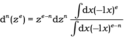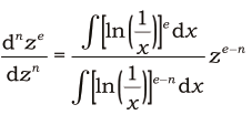donde los límites de integración son: $x$ = 0 como límite inferior y $x$ = 1 como límite superior. En (2) deberá actualizarse la simbología ln para 1. Después de Andrien-Marie Legendre (1752-1833) se usa la notación $\Gamma (e+1)$ para la integral del numerador y $\Gamma (e-n+1)$ para la integral del denominador.