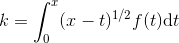 $k=\int_{0}^{x}(x-t)^{1/2}f(t)\mathrm{d}t$,