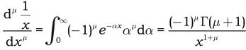 Es importante notar que (20) no es más que la transformada de Laplace (1812) de la función escalón unitario en la que se ha cambiado s por x. Partiendo de (20), Liouville (1832) utiliza la fórmula para la derivada de orden fraccionario y obtiene: