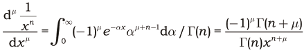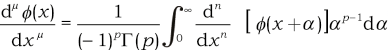 Para obtener la derivada de $\phi(x)$, Liouville (1832) hace $\mu =n- p$, donde $n$ es el menor entero positivo mayor que $\phi$, con lo que obtiene: