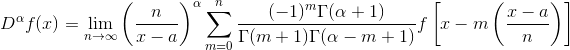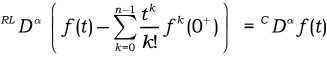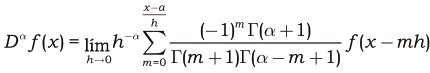 donde $n – 1 < a < n$ y $f^{(n)}$ es una derivada ordinaria. La relación entre ambas definiciones (32) y (33) de la derivada de orden fraccionario está dada por: