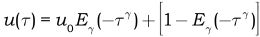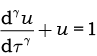 Esta ecuación diferencial se puede escribir también en función de una nueva variable dependiente y adimensional, representada por $u$, mientras que la variable temporal, adimensional, independiente es $\tau =kt$. Se tiene, entonces: