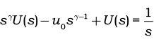 donde F(s) es la transformada de Laplace de f(t). Observe que la expresión (35) contiene condiciones iniciales fraccionarias, lo cual tiene dificultades de interpretación en la aplicación a problemas físicos, mientras que la expresión (36) tiene condiciones iniciales ordinarias, es decir, no fraccionarias, ya que $f^{(k)}(0)$ son derivadas ordinarias ($k = 1, 2, 3,...$). Ésta es una de las razones por las cuales en los problemas de aplicación se usa frecuentemente la derivada fraccionaria de Caputo (1969)(36).