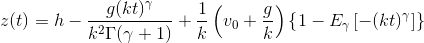 Se analizará, como un ejemplo de aplicación del cálculo fraccionario, el caso de una partícula en movimiento vertical en el seno de un medio, donde la resistencia es proporcional a la velocidad. Supóngase que una partícula se lanza hacia abajo con una velocidad inicial $v_0$ desde una altura $h$ en un campo gravitacional constante. La ecuación de movimiento es entonces (Thornston & Marion, 2004):
