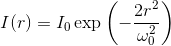 donde r es la distancia a partir del centro del haz y ω0 es el radio al cual la amplitud es 1/e.