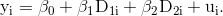 To obtain the albumin height mean and measure yolk color of eggs on the day they were placed on shelves, as well as changes in albumin height and color that eggs in the two groups attained after spending 3 and 6 days on store shelves, the following linear regression model with dummy variables was used (Asteriou & Hall, 2007):